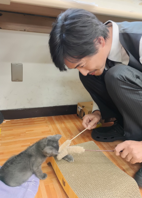 先日ドラマの撮影で久しぶりに京都に行ったのですが、撮影所内で仔猫を飼っていました。