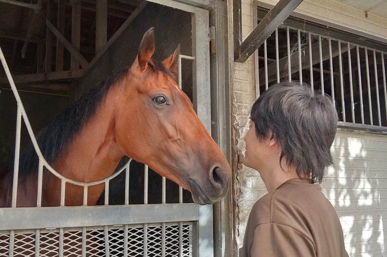 スルーセブンシーズは2023年のフランス凱旋門賞の4着馬で、たまたまご縁があって凱旋門賞出走前に会いに行く機会に恵まれました。
